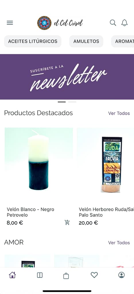 El Cel Crisol es una tienda esotérica con sedes físicas en L’Hospitalet de Llobregat (Barcelona) y Maçanet de la Selva (Girona), además de una reconocida presencia online. Desde 1999, se dedica a ofrecer productos y servicios esotéricos de calidad, incluyendo esencias, inciensos, velas, amuletos y consultas de tarot. Con el objetivo de acercar aún más su catálogo y conocimientos a sus clientes, decidieron desarrollar una aplicación móvil que facilitara el acceso a sus productos y contenidos.