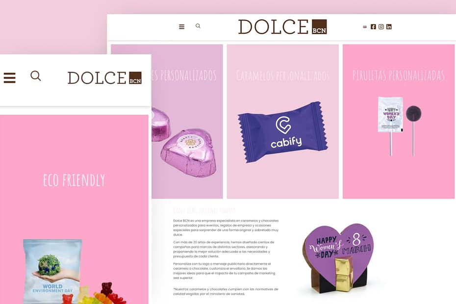 DOLCEBCN es una tienda online especializada en caramelos, golosinas y dulces de todo tipo. Con una amplia variedad de productos, busca transmitir la alegría y frescura del mundo de los dulces a través de su plataforma digital.