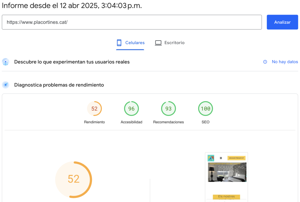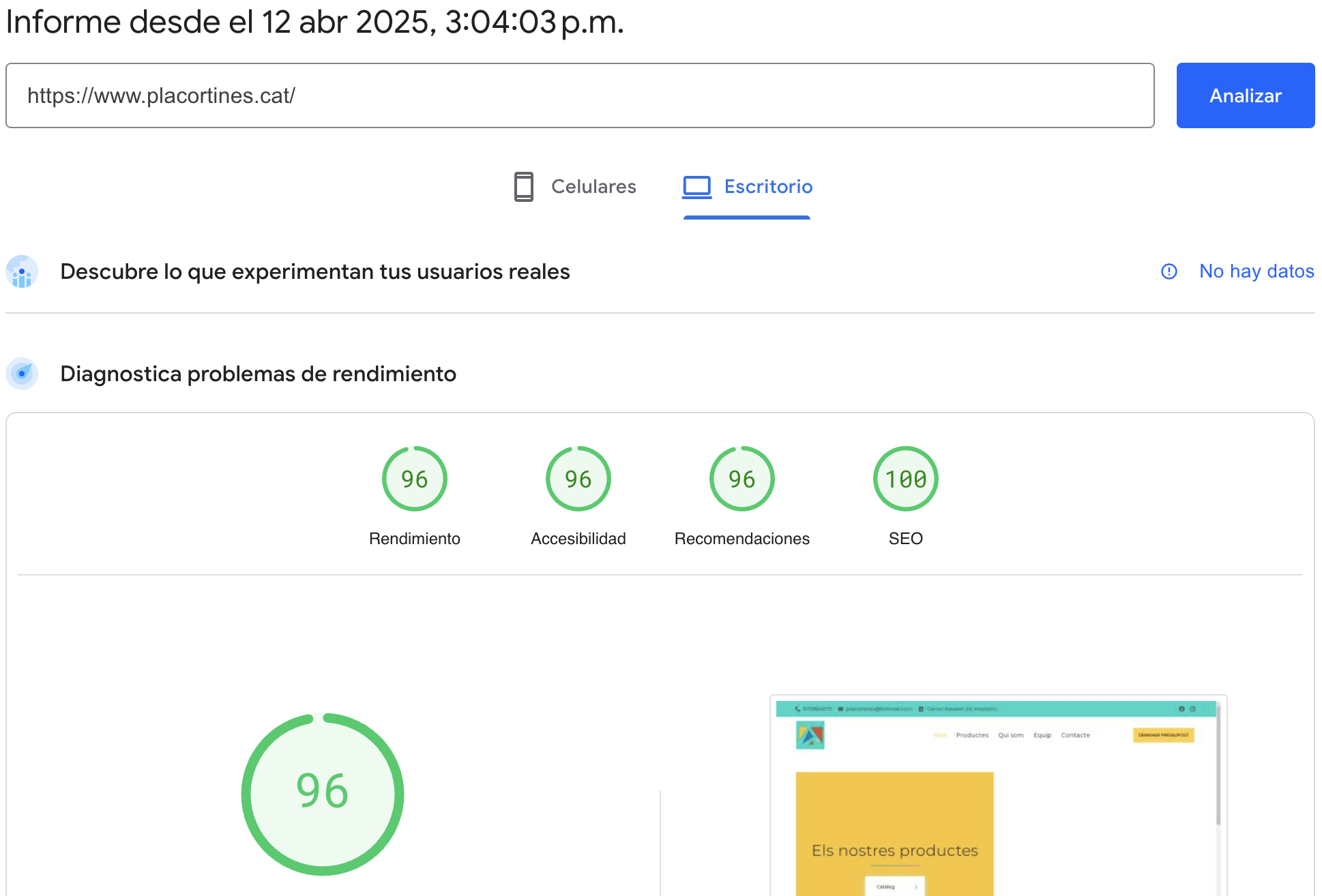 Gracias a estas mejoras, placortines.cat no solo ofrece una imagen sólida y moderna en línea, sino también una estructura técnica robusta, rápida y segura para sus visitantes.