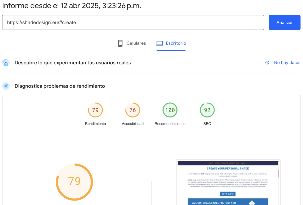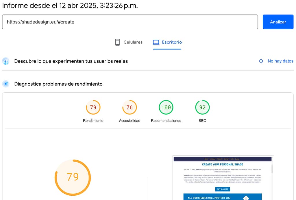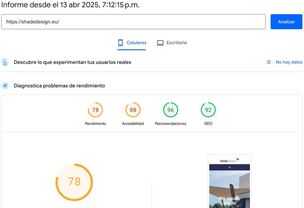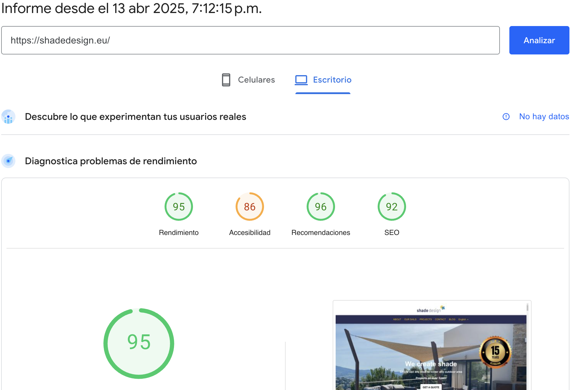 Gracias a estas mejoras, shadedesign.eu no solo ofrece una imagen sólida y moderna en línea, sino también una estructura técnica robusta, rápida y segura para sus visitantes.